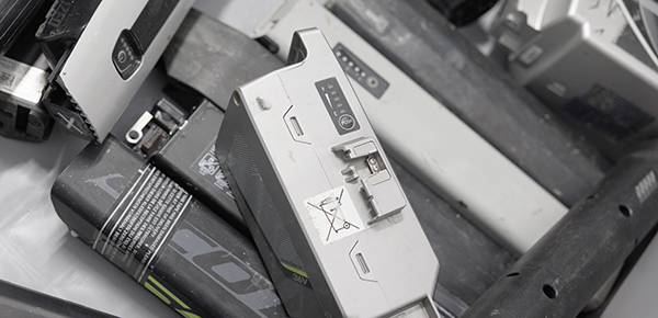 Aussortierte Akkus, die nicht mehr funktionieren und recycelt werden können.